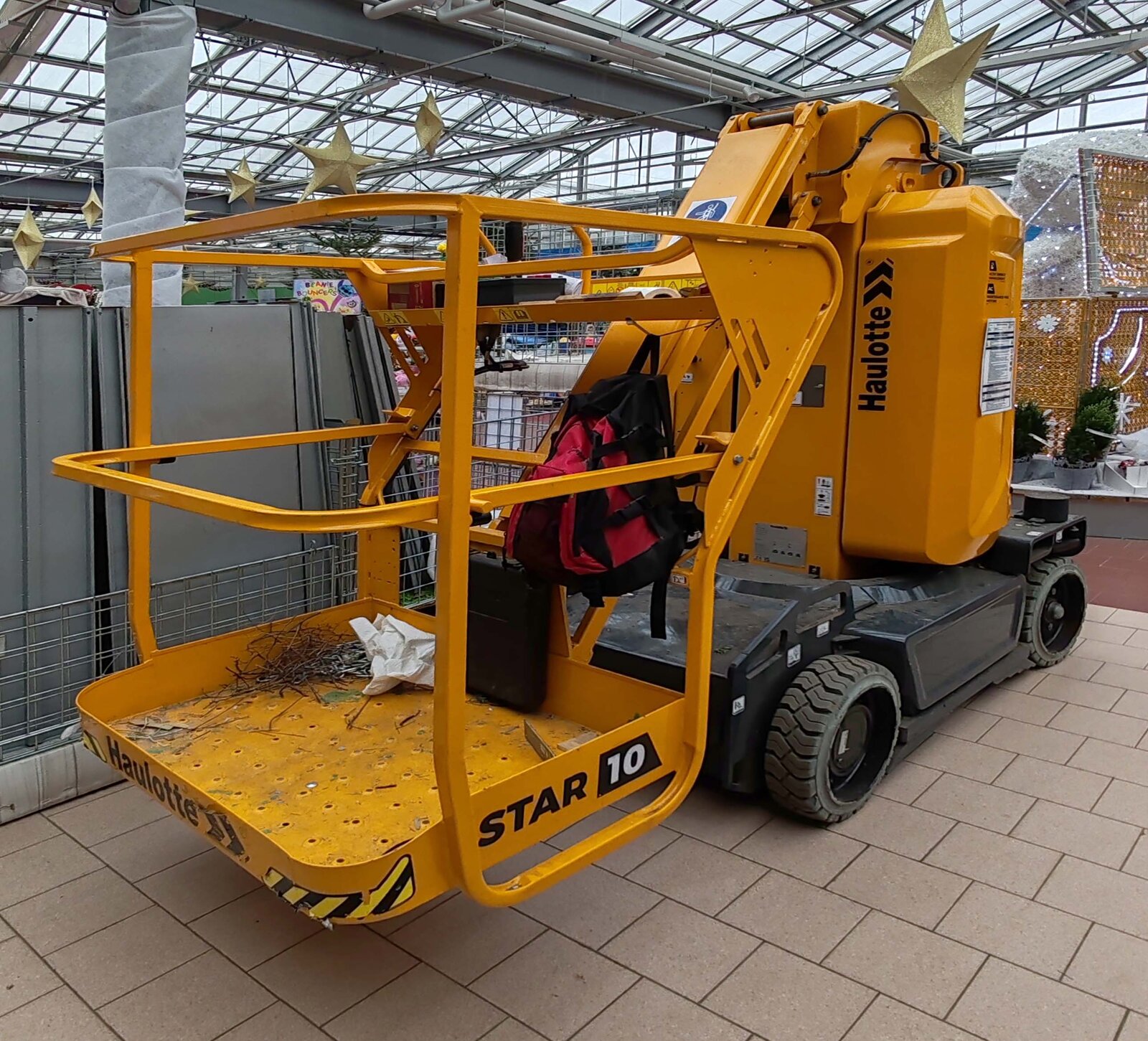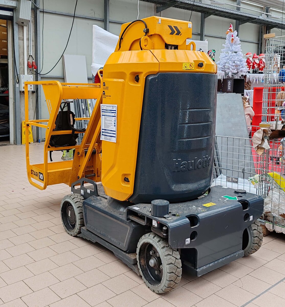 Haulotte Scherenarbeitsbühne stand nahe einer Baustelle. 11.2025