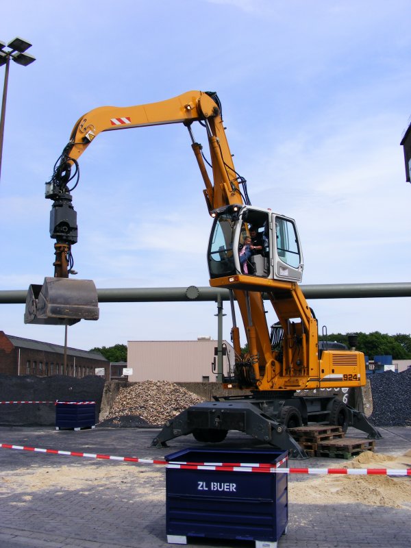 Ein Liebherr-Hydraulikbagger auf dem Gelände des Bergwerks Auguste Victoria 3/7 in Marl beim Tag der offenen Tür am 9. Mai 2009.