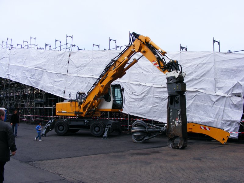 Ein Liebherr-Hydraulikbagger auf dem Gelände des Bergwerks Auguste Victoria 3/7 in Marl beim Tag der offenen Tür am 9. Mai 2009.