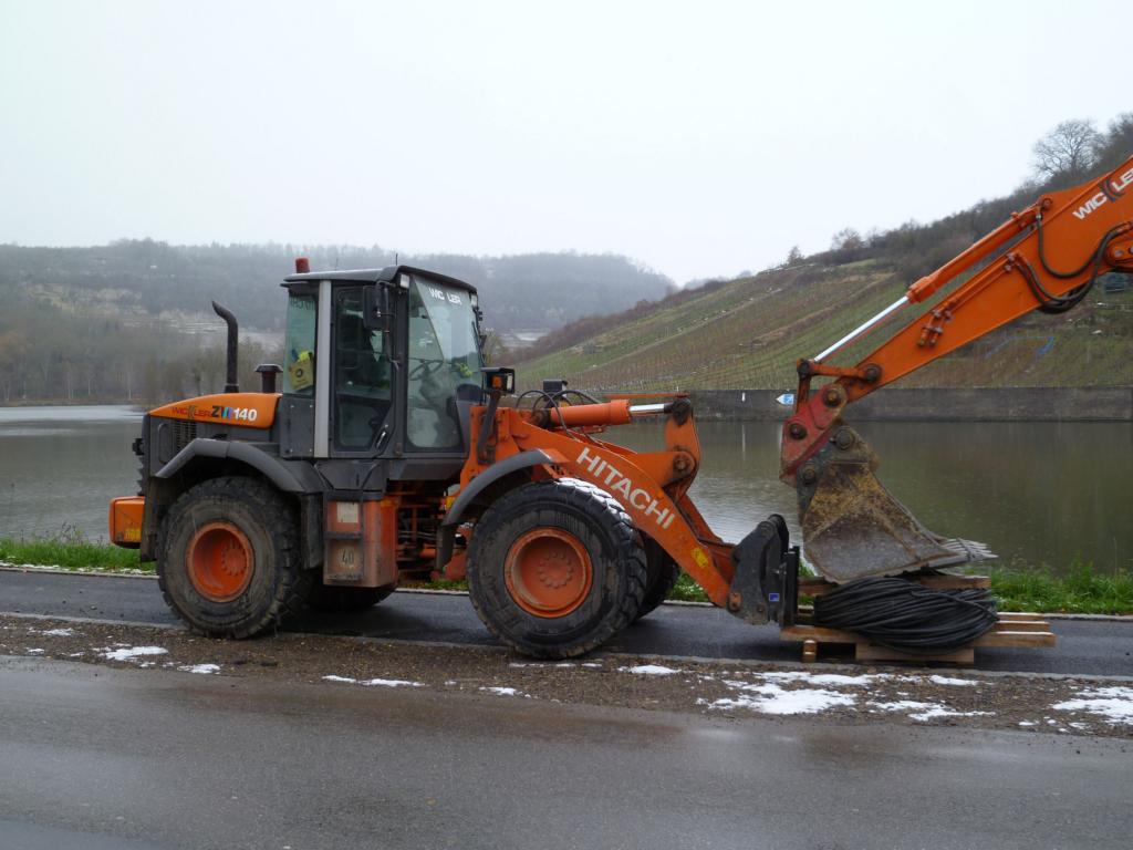 Hitachi ZW 140 bei Arbeiten an der Durchgangsstraße in Machtum (Lux.), 02.12.2012