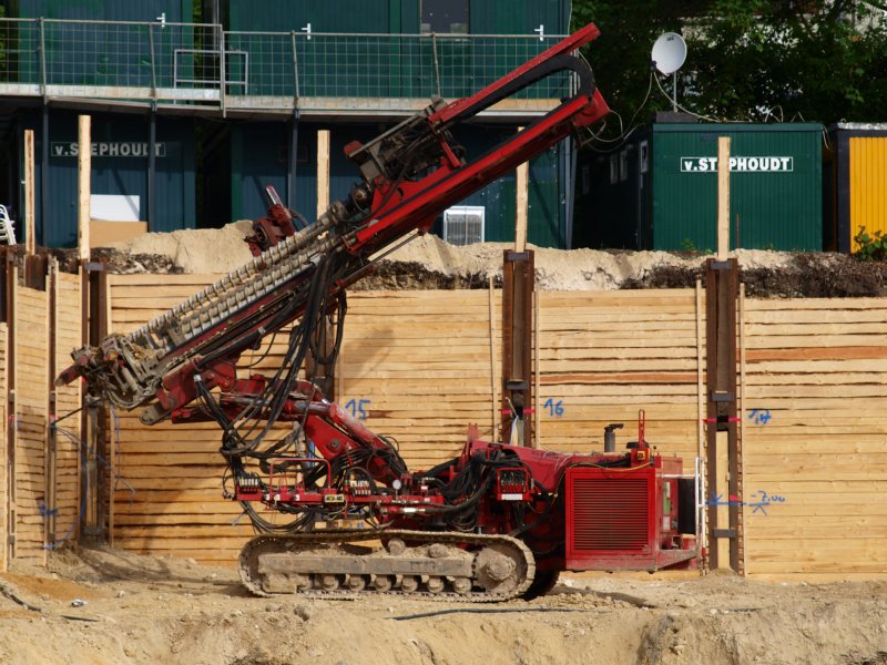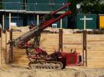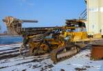 Das Klemm Bohrgerät hat seinen Einsatz an der Baustelle der Anklamer Eisenbahnbrücke beendet und wurde mit einem Faun Teleskop Mobilkran ATF 90G in der Nähe des Silos abgestellt. - 22.02.2013