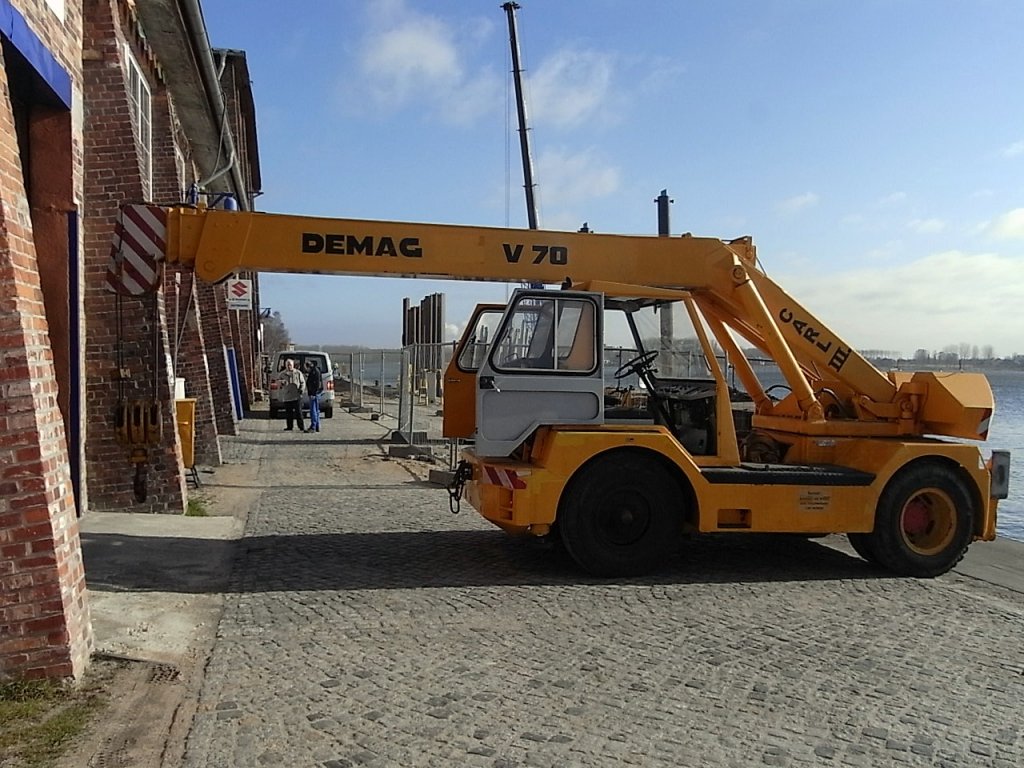 Dieser Autodrehkran DEMAG V70 hat sogar einen Namen "Carl III.", gesehen im Fischereihafen Rostock. (Aufnahme vom 24.03.11)