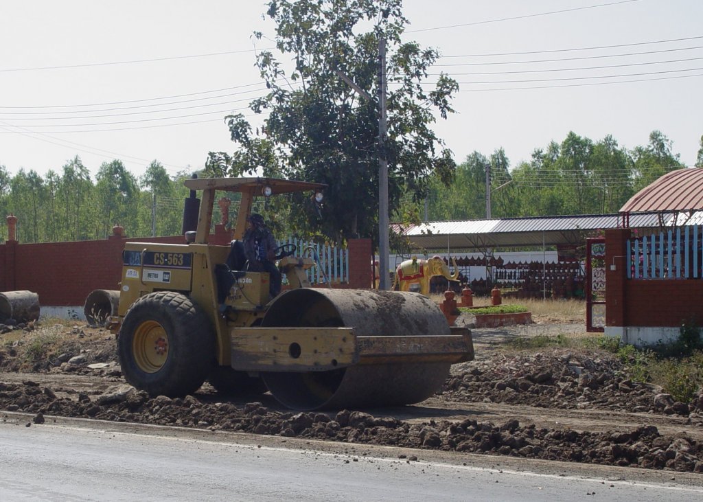 Ein CATERPILLAR CS-563 Walzenzug bei der Arbeit am 04.02.2011 bei der Stadt Buri Ram in Thailand