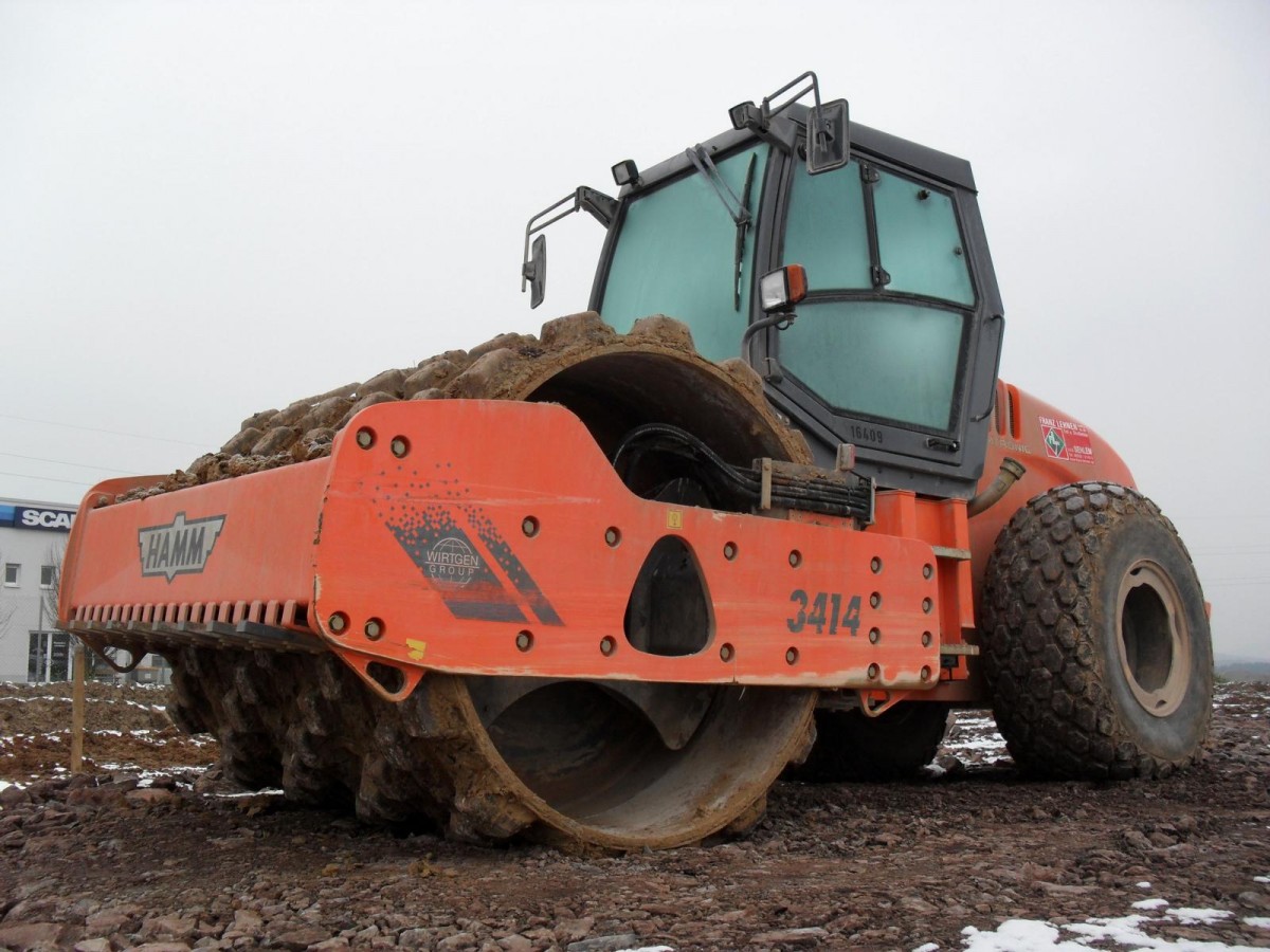 =Hamm HC 701 des Bauunternehmens STOLZ steht auf einer Baustelle in Petersberg, 04-2025