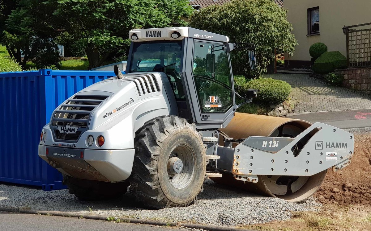 =Hamm HC 701 des Bauunternehmens STOLZ steht auf einer Baustelle in Petersberg, 04-2025
