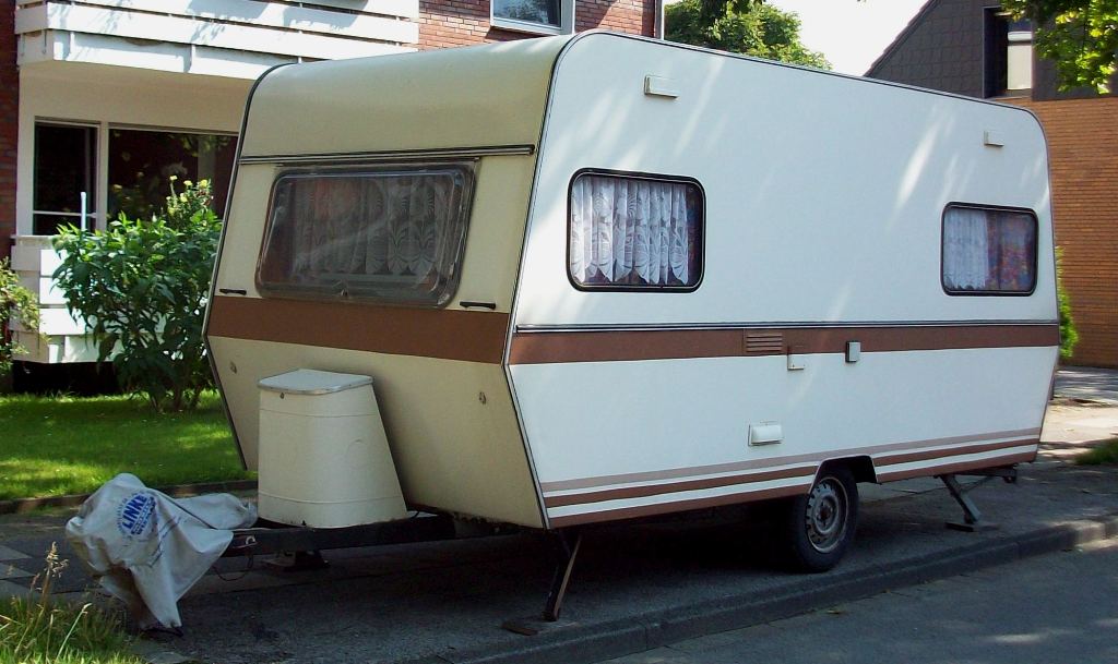 recht altes Modell eines Camping Wohnanhängers in Hochlar gesehen am 10/08/2010 ( kennt jemand den Hersteller ? )
