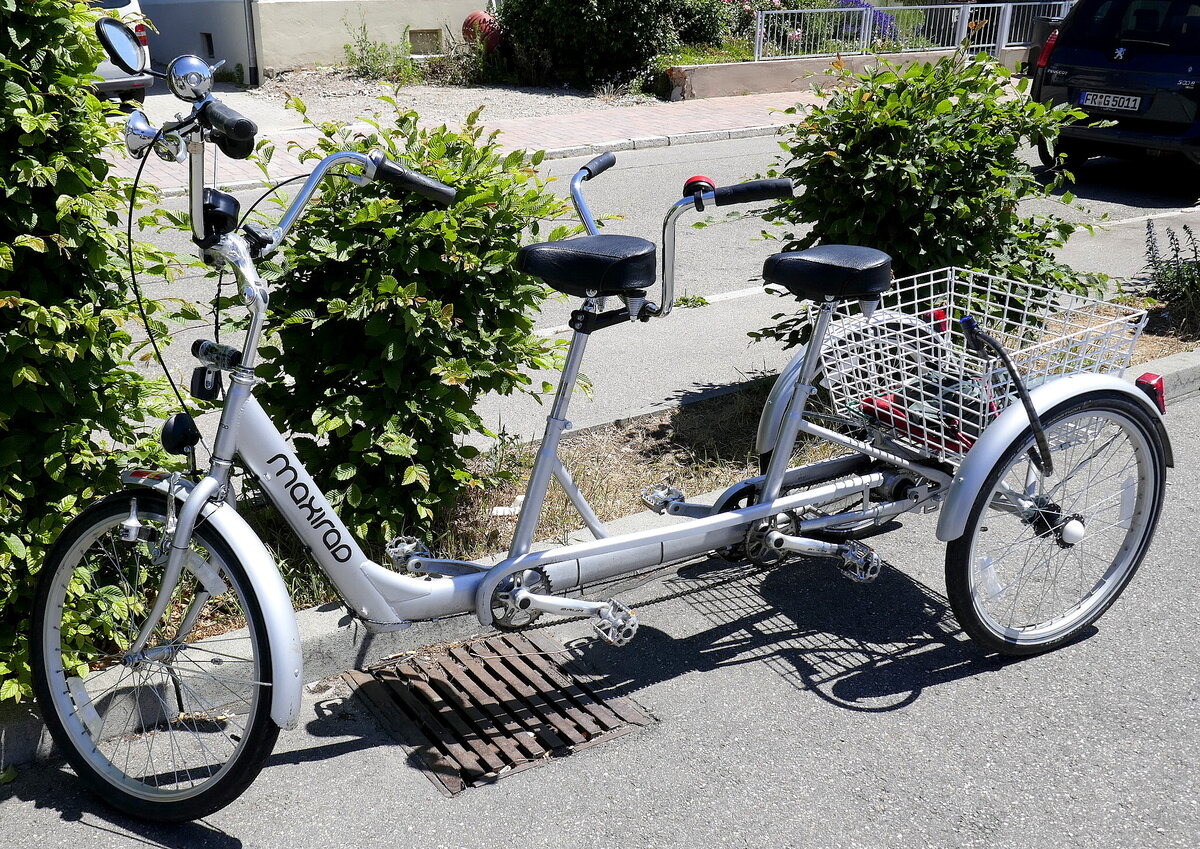 Maxirad, dreirädriges Tandemrad mit Transportkorb der niederländischen Firma Maxirad, Juni 2022