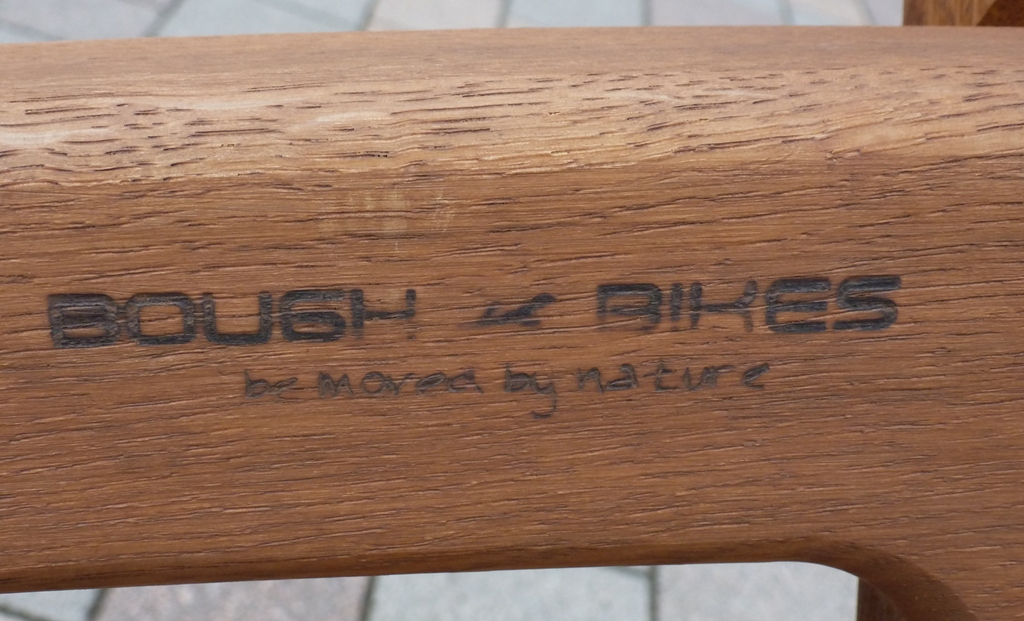 Schriftzug des BOUGH BIKES Holz Fahrrad SYLT