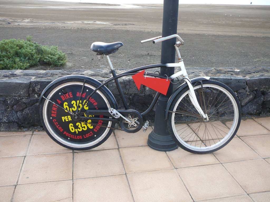 Fahrrad als Werbeträger für einen Fahrradverleih auf Lanzarote im Januar 2010