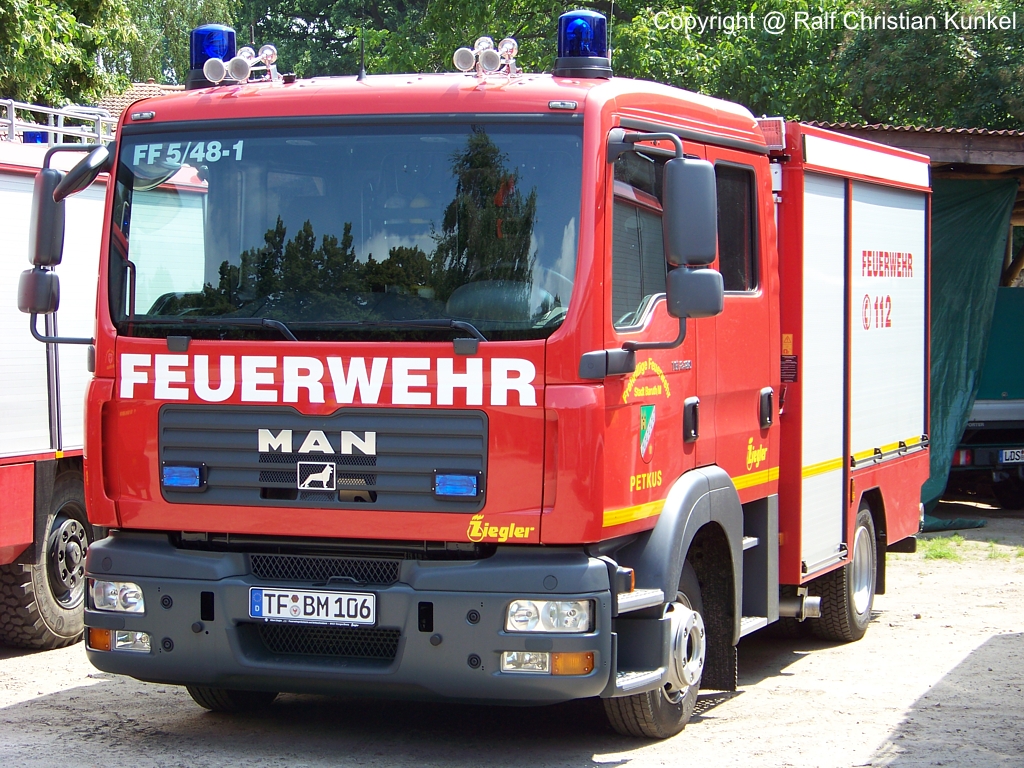 Tragkraftspritzenfahrzeug mit Wasser TSF-W der Feuerwehr Petkus (übrigens mein Heimatort in dem ich aufgewachsen bin) Ortsteil der Stadt Baruth auf einem MAN TGL 8.180, Aufbau Ziegler, Baujahr 2008 - fotografiert am 04.07.2009 beim Feuerwehrfest in Baruth/Mark Land Brandenburg - Copyright @ Ralf Christian Kunkel