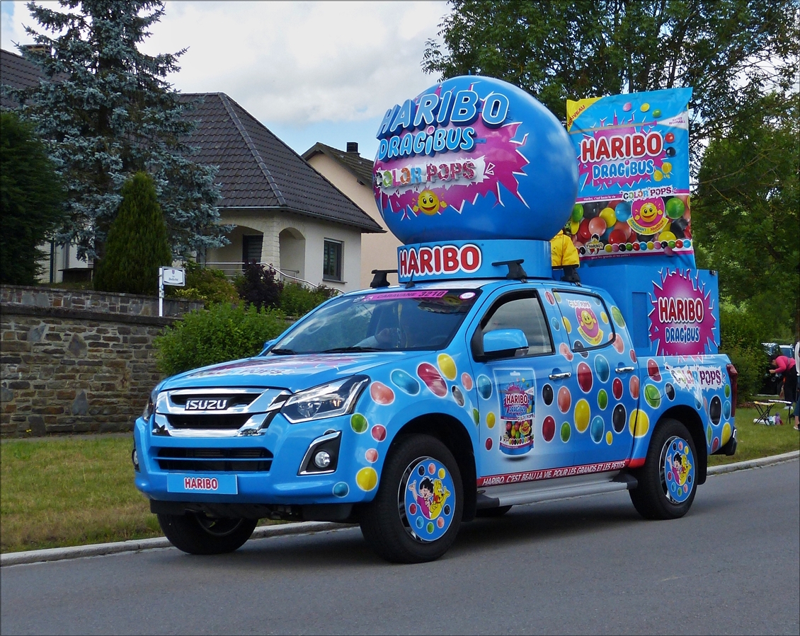 Isuzu D-Max, als Werbefahrzeug in der Caravane du Tour auf den Straßen durch Luxemburg unterwegs. 03.07.2017