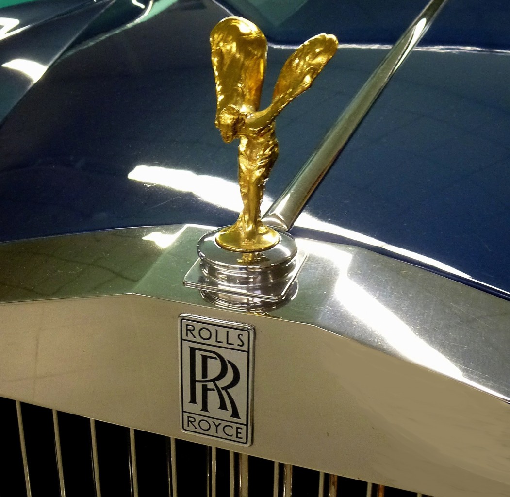 Rolls Royce Ltd., Kühlerfigur "Spirit of Ecstasy" und Logo am Kühler des "Silver Shadow I", Baujahr 1976, Dez.2014