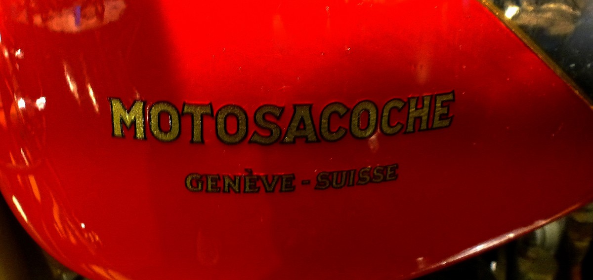 Motosacoche S.A., Tankaufschrift an einem Oldtimer-Motorrad von 1932, die Schweizer Firma in Genf existierte von 1899-1957, Jan.2015