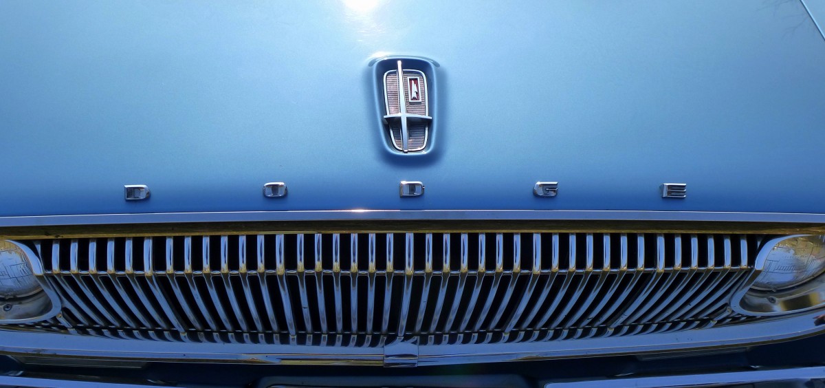 DODGE, Schriftzug und Logo am Oldtimer-PKW "Dart" von 1962, die US-amerikanische Autofirma ist eine Tochtergesellschaft von Chrysler, April 2015