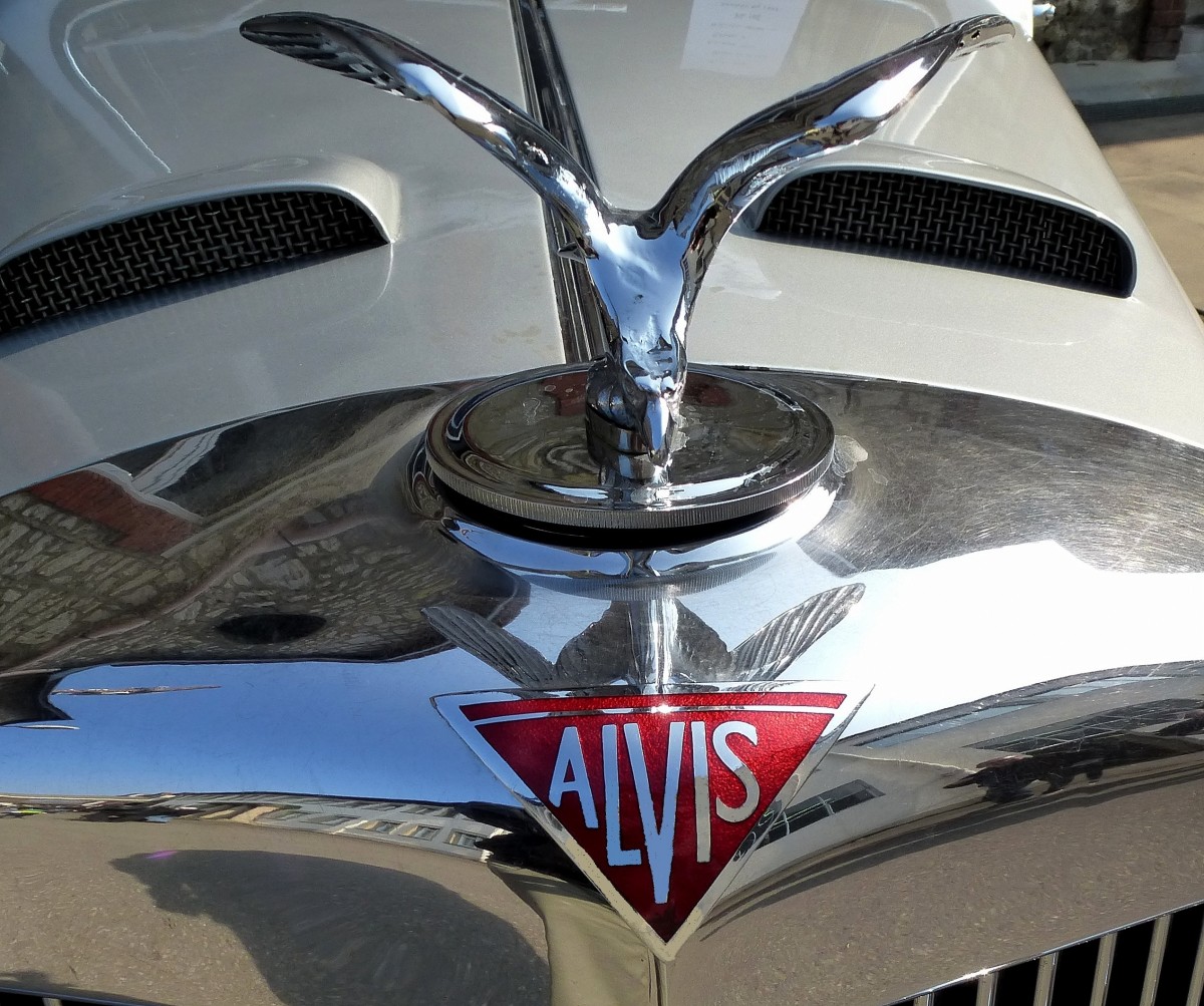 ALVIS, Logo und Kühlerfigur an einem Oldtimer-PKW von 1935, Jan.2016