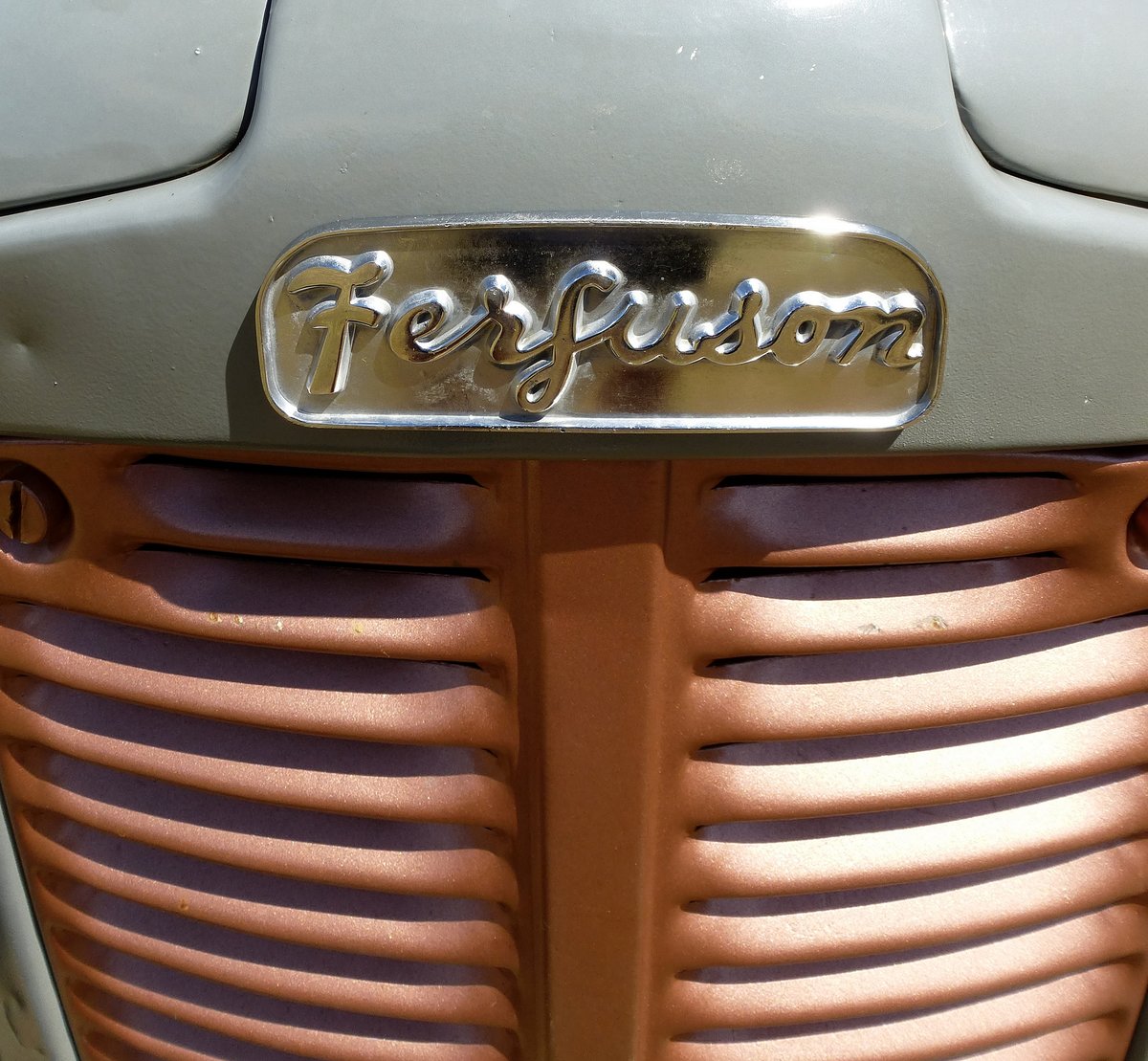 Ferguson, Schriftzug am Kühler eines Oldtimer-Traktors aus den 1950er Jahren, Sept.2017