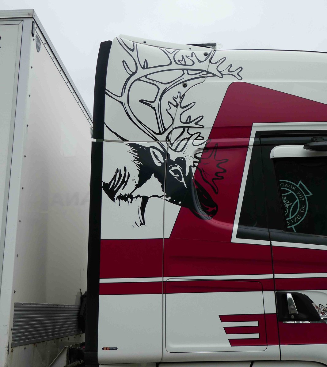 =Führerhausgestaltung des Scania der Möbeltransporterfirma LEIV SAND, gesehen in Norwegen im August 2017