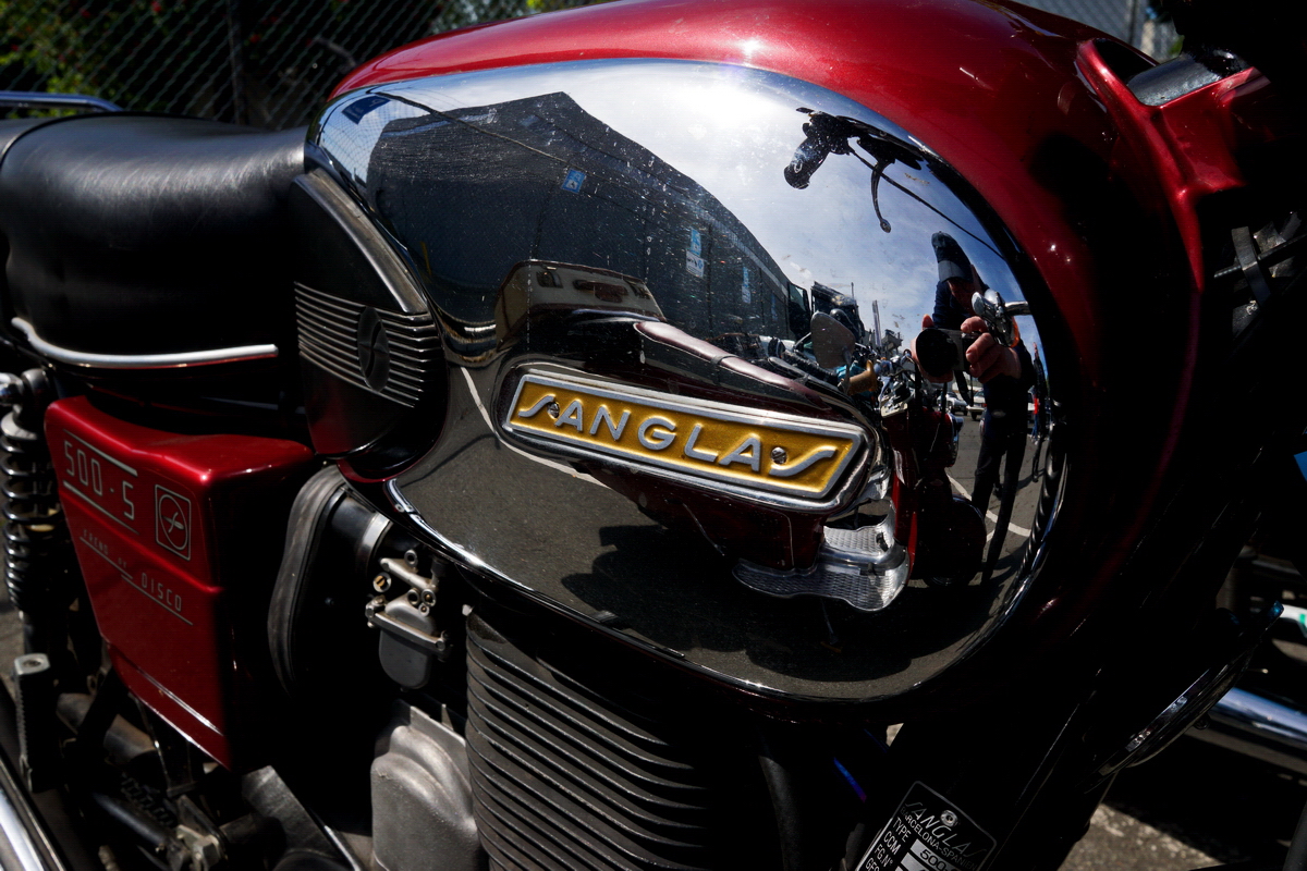 Logo der Fa. Sanglas auf dem Tank einer Sanglas 500-S von 1977. Foto:32. Oldtimertage Berlin-Brandenburg; 13.05.2019