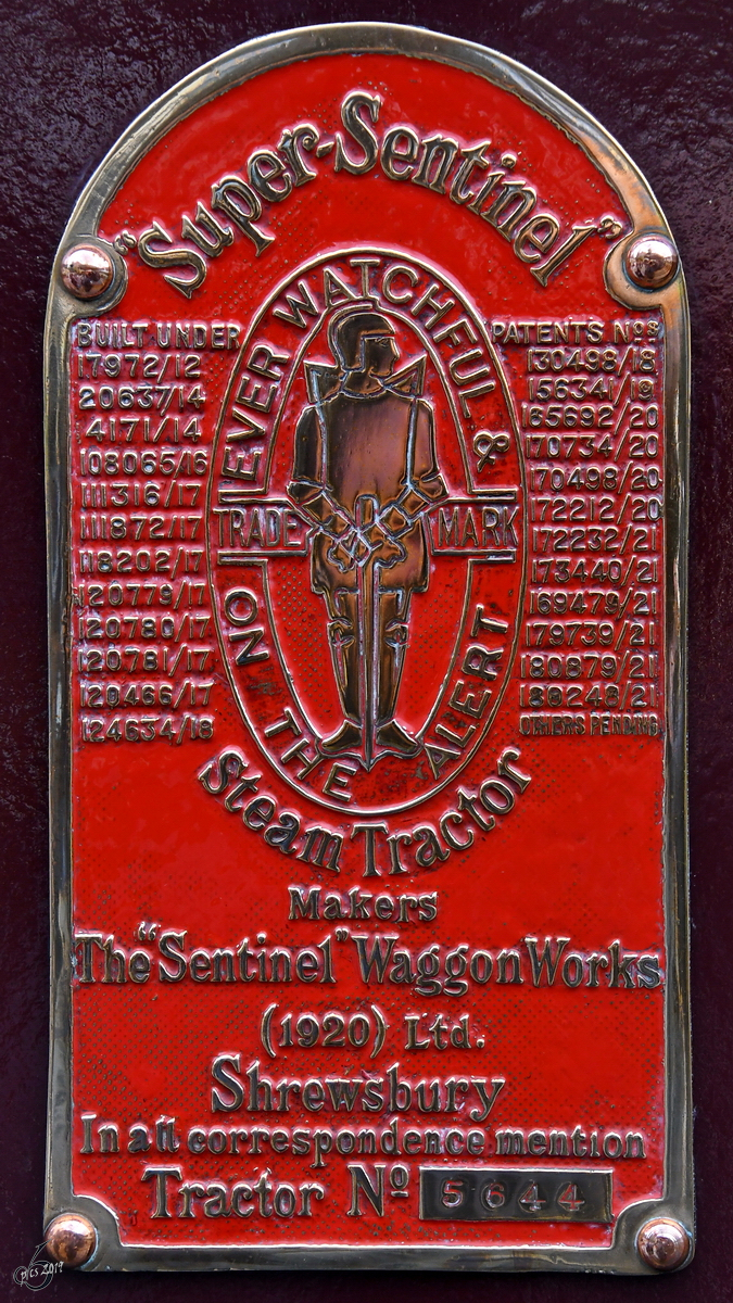 Typenschild am Dampftraktor "The Elephant" (Altenbeken, Juli 2019)