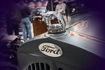 Kühlerfigur auf einem FORD. Baujahr um 1929. Ausstellungsstück auf den Berliner Motorrad Tagen. Foto: BMT (Berliner Motorrad Tage) Febr. 2020