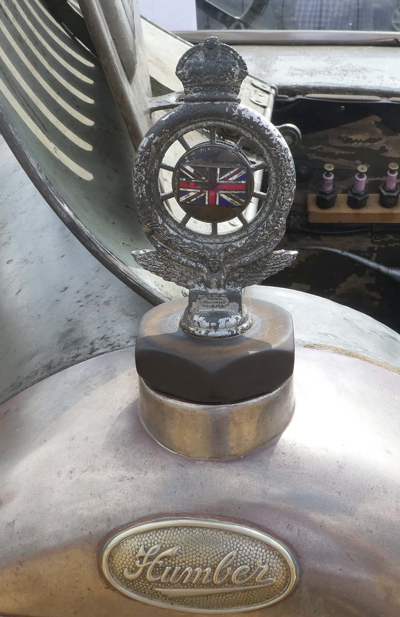 =Humber 11.4, Bj. 1922, Frontemblem und Temperaturanzeige, gesehen beim Oldtimertreffen in Ostheim, 07-2019