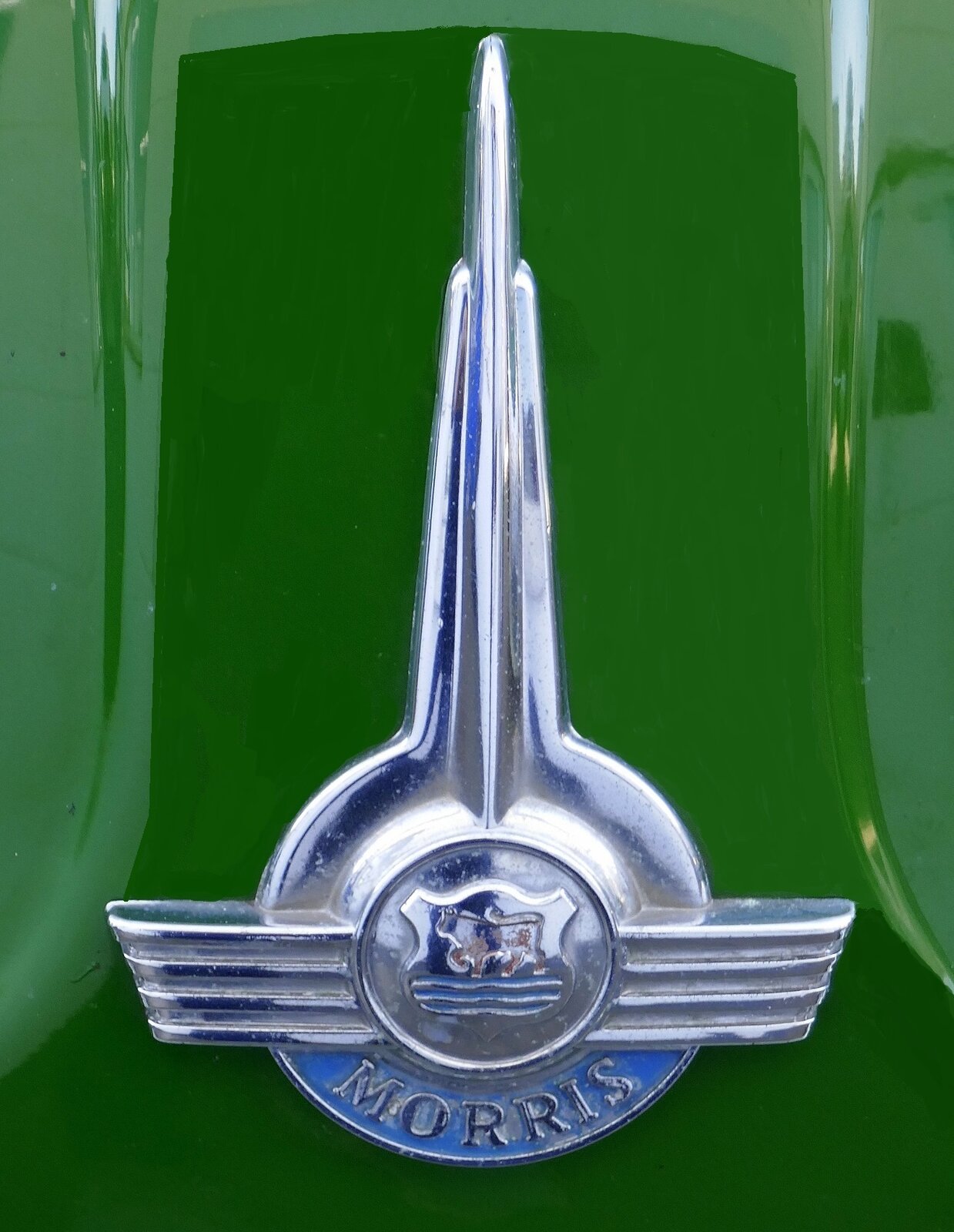 Morris, Kühleremblem am Minor 1000 Traveller, die englische Autofirma bestand von 1913-1962, Sept.2022