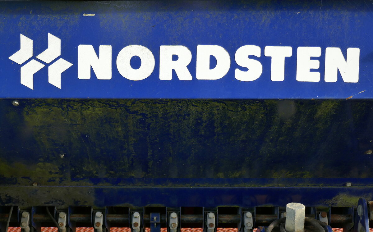 Nordsten, Schriftzug auf einer Drillmaschine, die Landmaschinenfabrik war die größte in Dänemark und bestand von 1877 bis 1958, Okt.2022