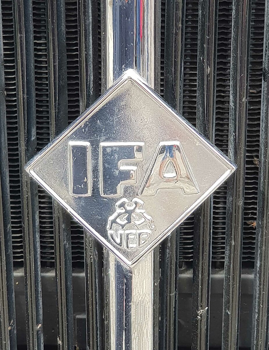 =Frontemblem eines Ifa F8 Cabrio, präsentiert bei den Meiningen Classic 2022 im Juli.