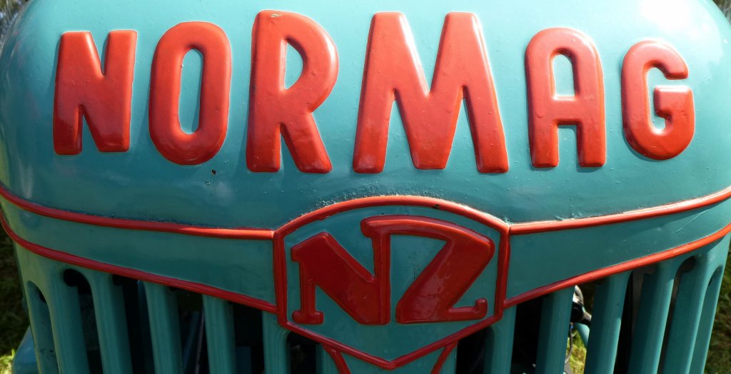 Normag-Zorge, Schriftzug auf der Kühlerhaube eines Oldtimer-Traktors, Juli 2013