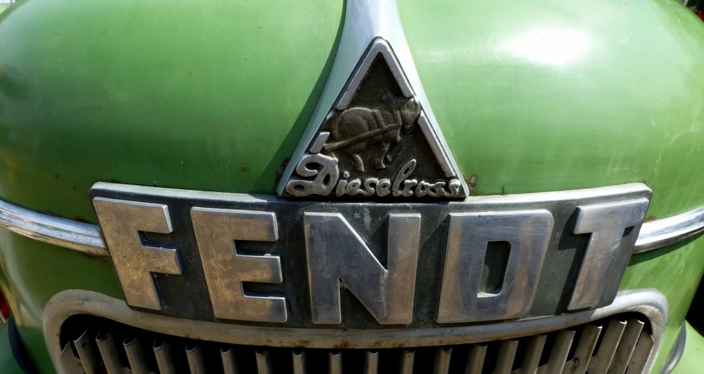 Fendt Dieselross, Logo und Schriftzug an einem Oldtimertraktor der bayrischen Firma, Aug.2013