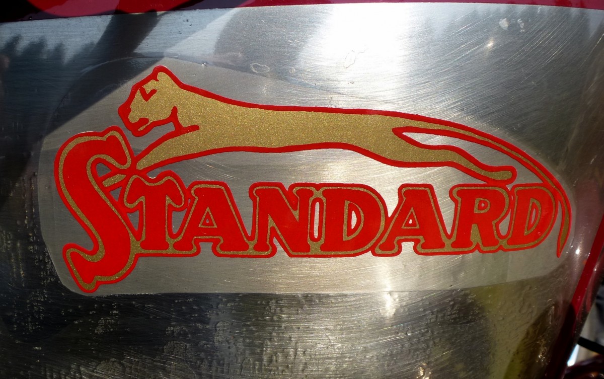 Standard, Tankaufschrift an einem Oldtimer-Motorrad, die Firma wurde 1926 in Ludwigsburg gegründet, Aug.2013