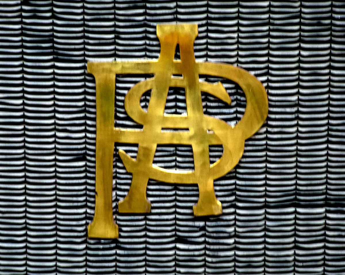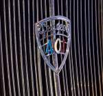 Pilain, Initialen der französischen Autofirma am Kühlergrill eines Oldtimers von 1911, Dez.2013