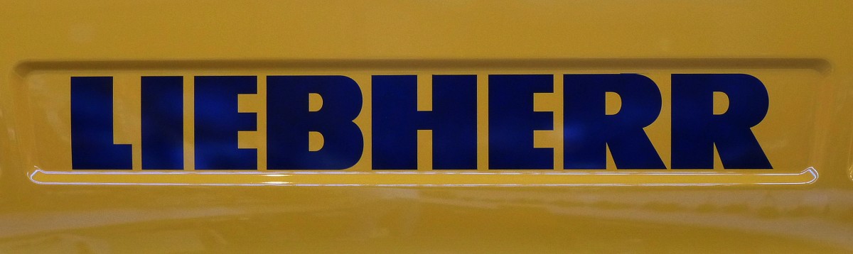 Liebherr, Schriftzug des Baumaschinen-und Fahrzeuherstellers, 1949 in Oberschwaben gegründet, gehört heute zu den Weltmarktführern, März 2014
