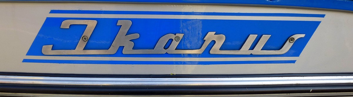 Ikarus, Schriftzug an einem Oldtimerbus der ungarischen Firma, Juni 2014