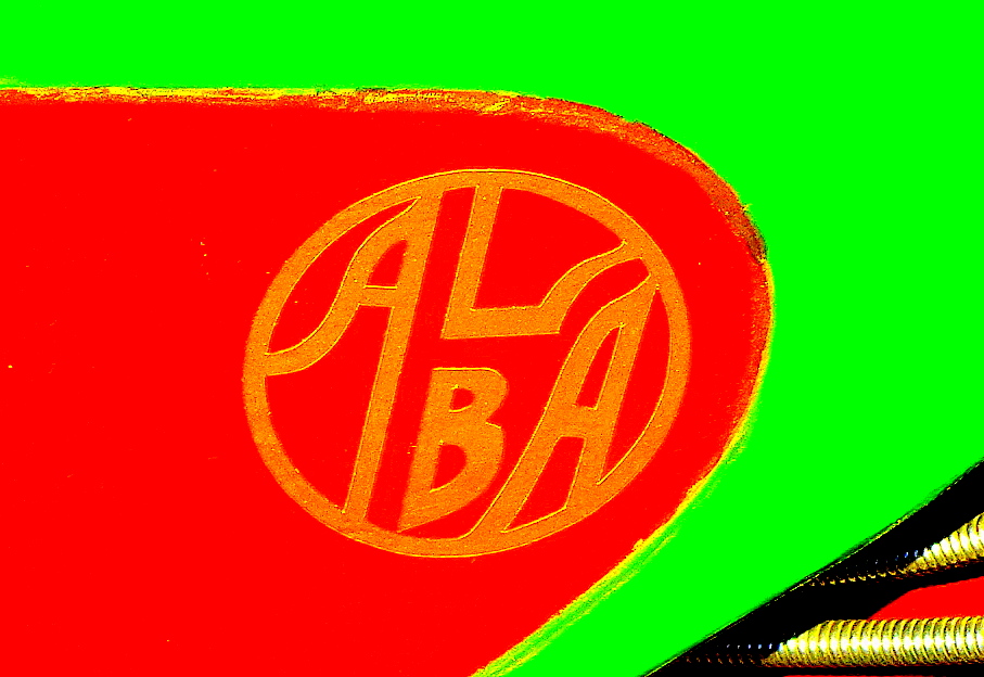ALBA, Tankemblem an einem Oldtimer-Motorrad, deutsche Motorradfirma in Stettin in den 1920er Jahren, Aug.2014