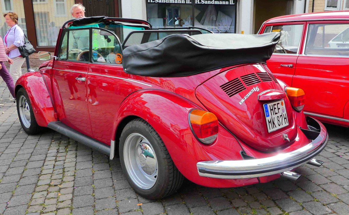 =VW Käfer Cabrio 1303 LS, ausgestellt beim Sockenmarkt in Lauterbach, 09-2018