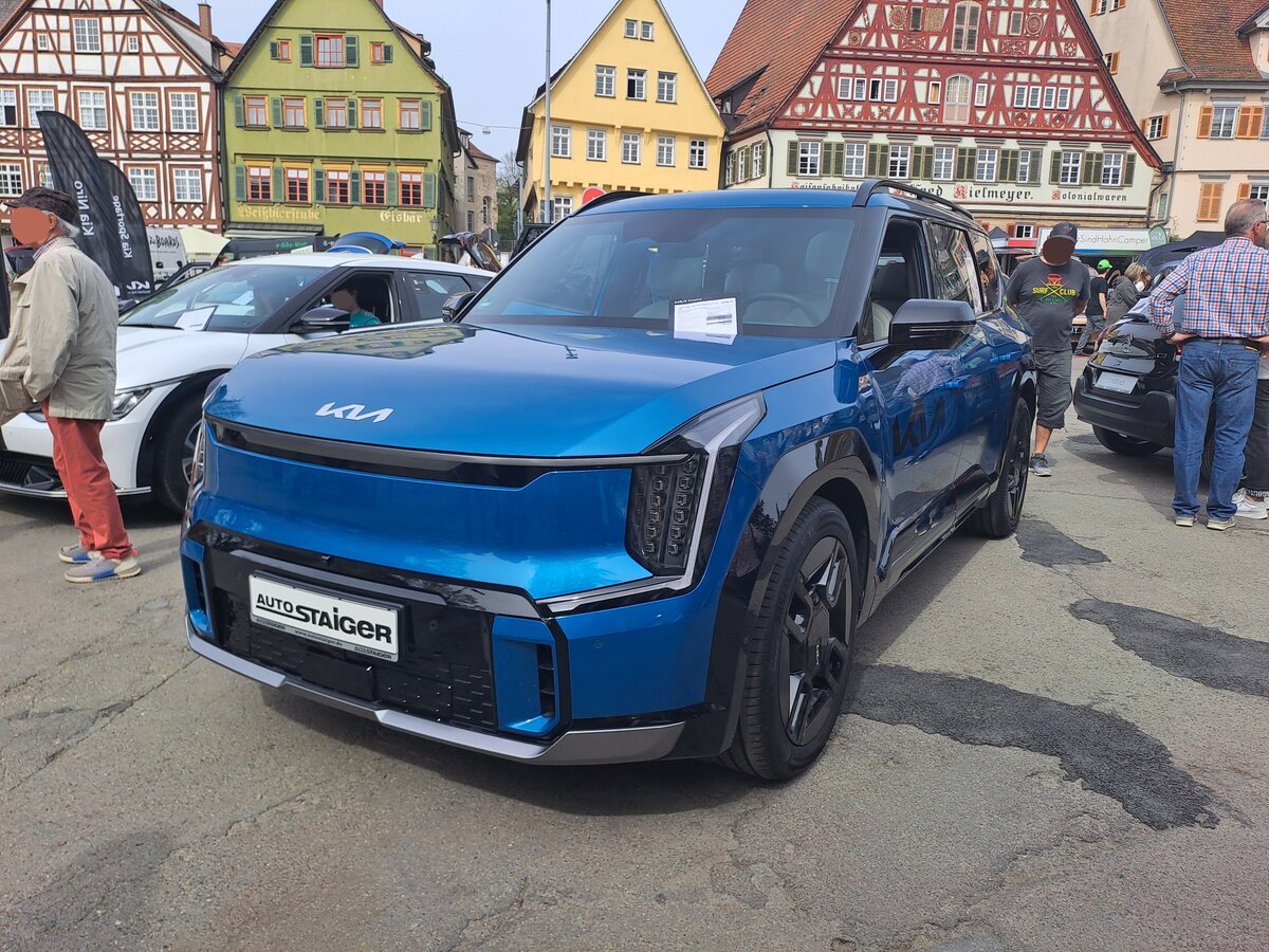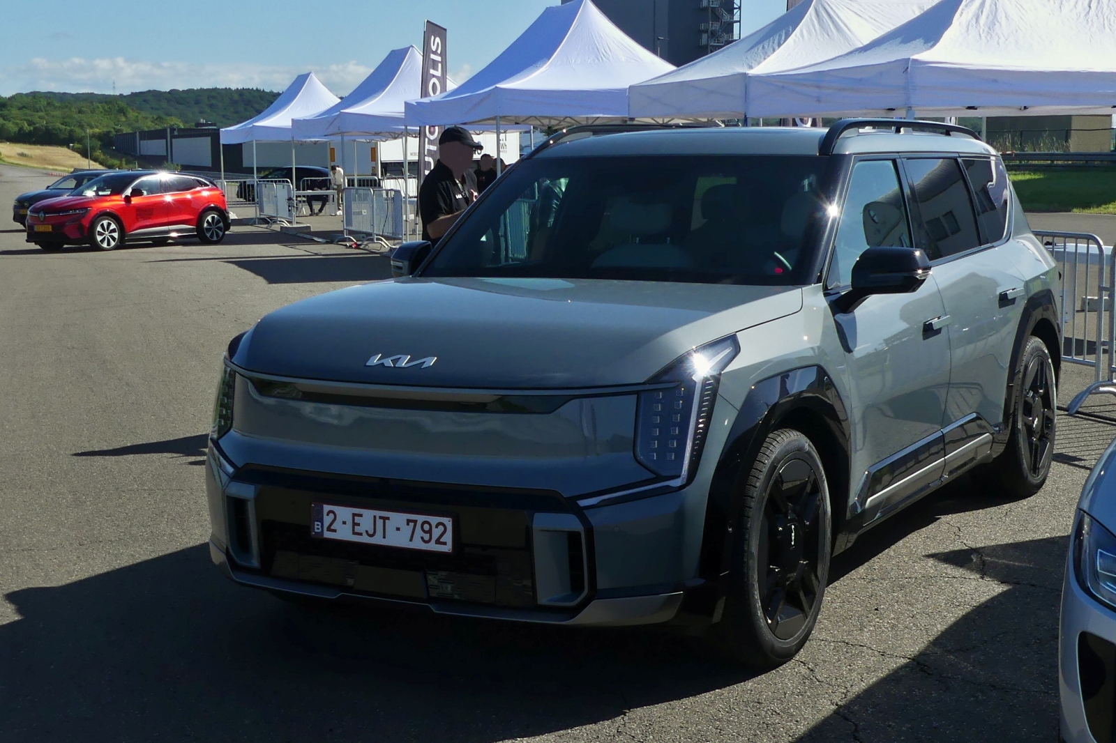 KIA EV9, gesehen beim e-Day in Colmar Berg, bereit zu einer Probefahrt auf dem Goodyear Ring. 07.07.2024