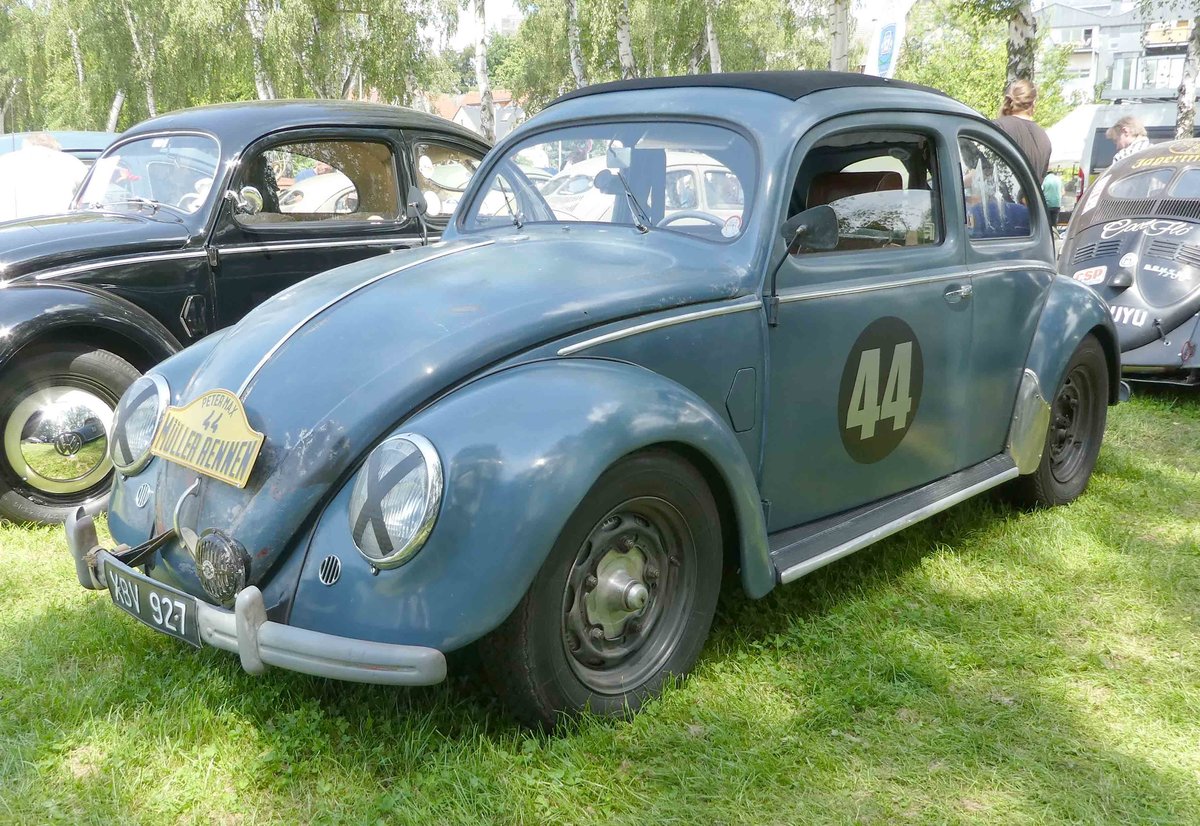 =VW Brezel-Käfer steht auf dem Ausstellungsgelände in Bad Camberg anl. LOTTERMANN-Bullitreffen im Juni 2019