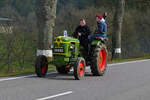 Deutz D 6006 Traktor, nahm an der Rundfahrt in der Nähe von Brachtenbach teil. 10.04.2023