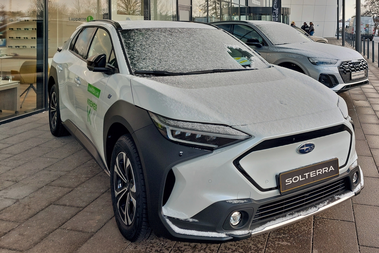 Subaru Solterra e, ausgestellt vor einem Einkaufszentrum im Norden von Luxemburg. 01.2024