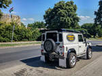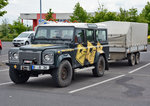 =Landrover Defender von HASENPFLUG-Baudekration steht im Juni 2023 in Fulda