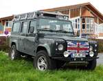 Grüner Land Rover Devender unterwegs bei Wyler-Innertkirchen am 2024.09.08