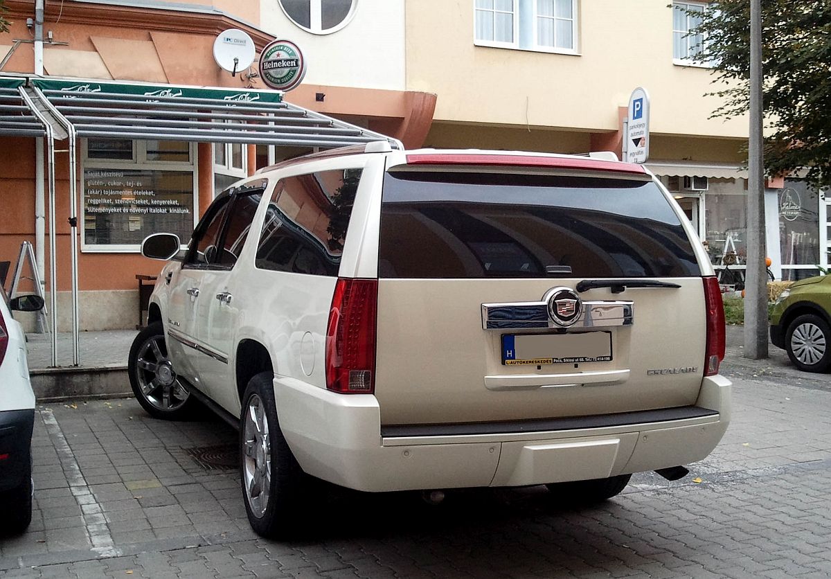 Cadillac Escalade (Rückansicht), nicht für die europäische Parklplätze geeignet. Aufnahmezeit: 07.10.2015