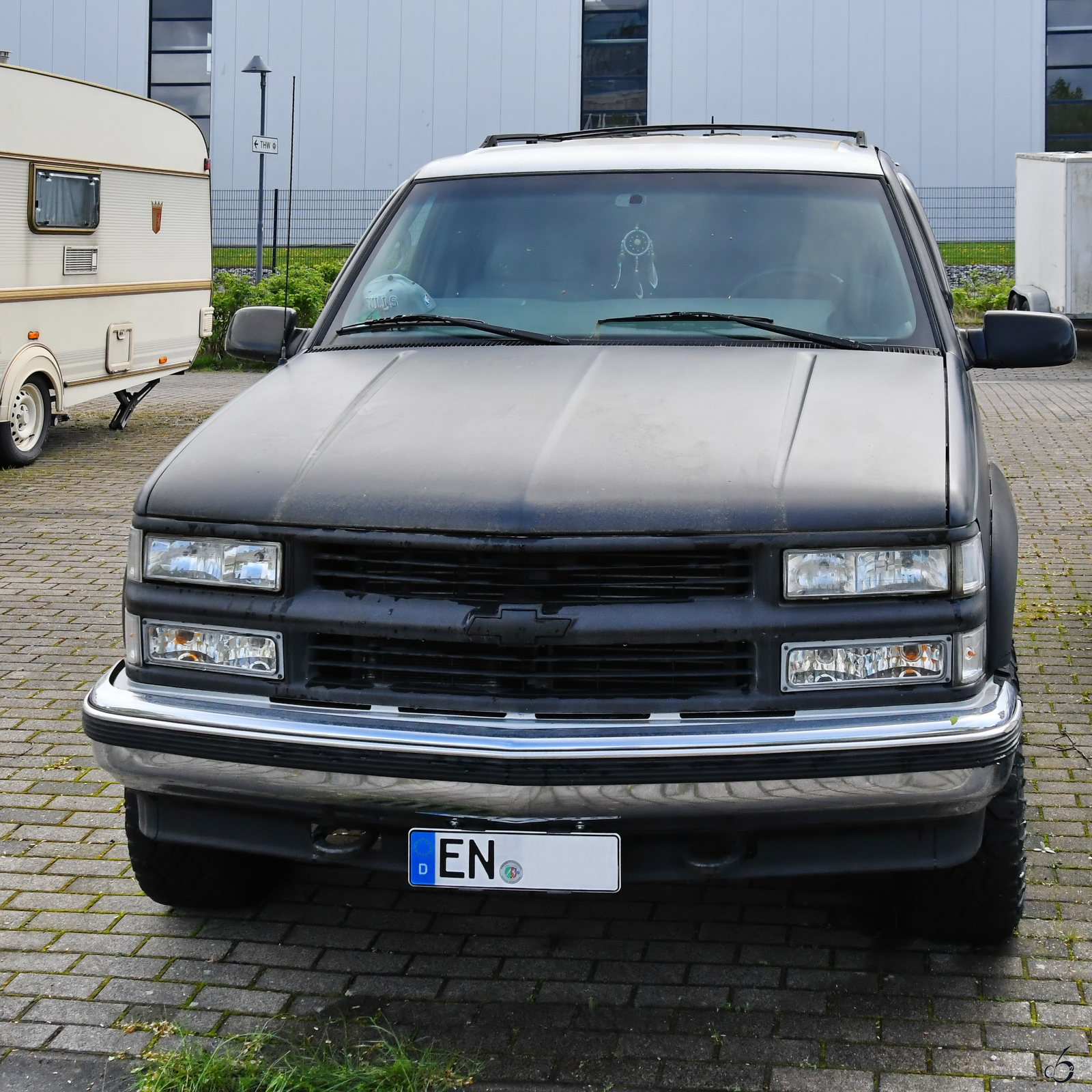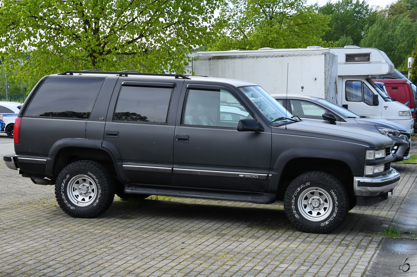 Chevrolet Suburban von 1974 in der Retro Car Show im Einkaufszentrum "Piterlend" in St. Petersburg, 17.2.18