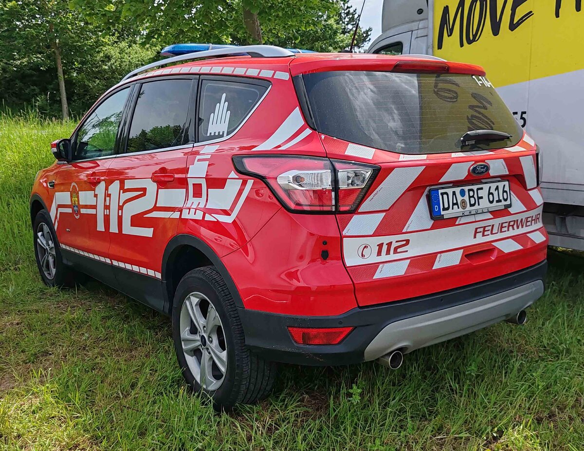 =Ford Kuga als Kommandowagen der Berufsfeuerwehr DARMSTADT steht auf dem Parkgelände der Rettmobil 2024 in Fulda.