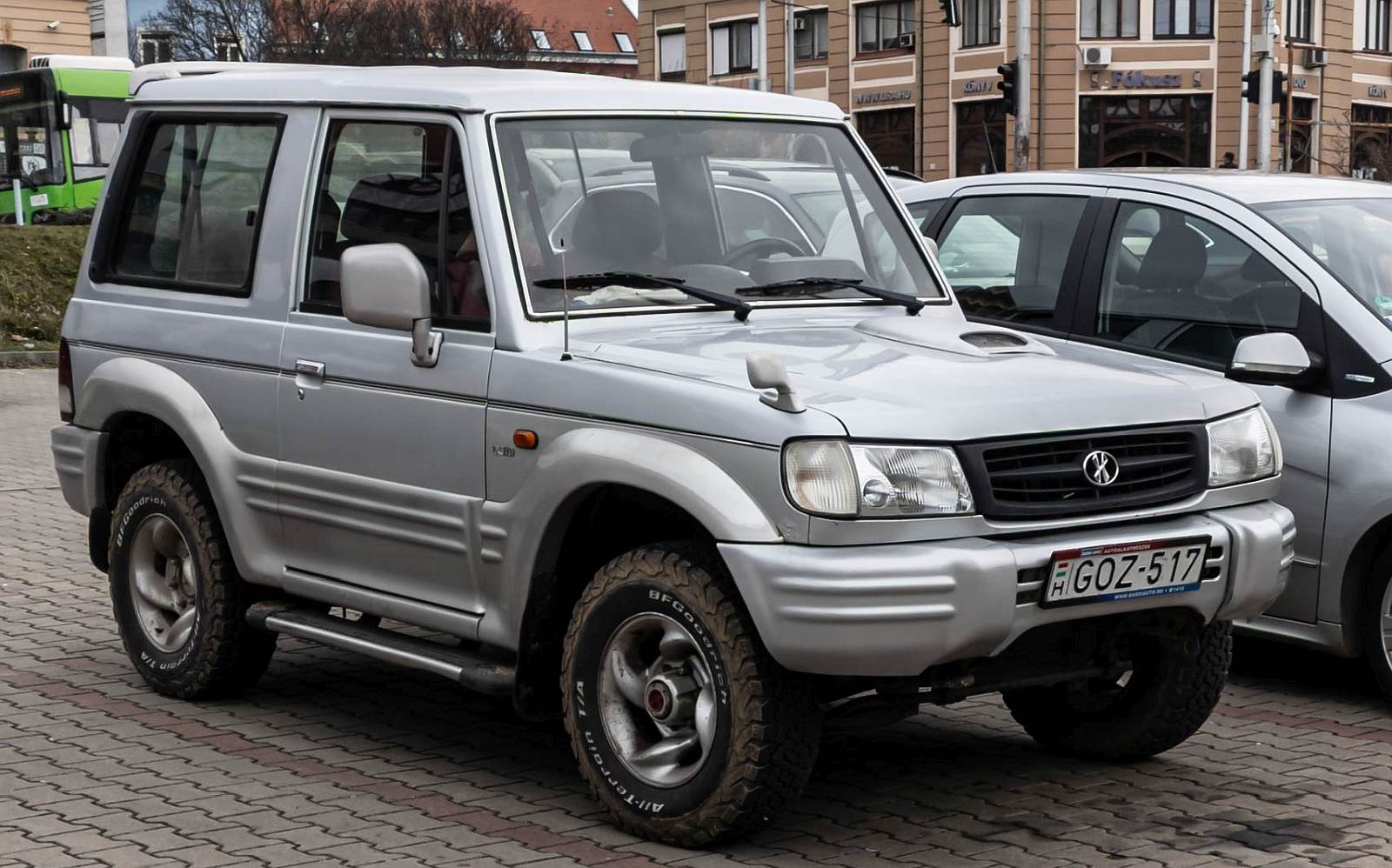 Rückansicht:dreitürer hyundai Galloper II. Die Aufnahme stammt von Juni, 2021.