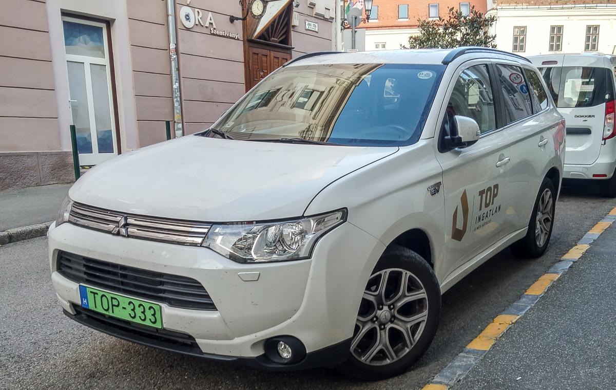 Mitsubishi Outlander PHEV, Firmenwagen von Top Immobilien, gesehen in Pécs (Ungarn), Oktober, 2019