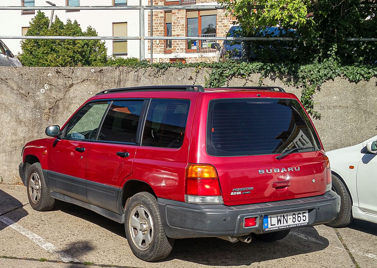 Rückansicht: Subaru Forester in Rot. Foto: August, 2021.
