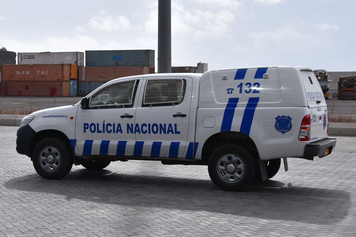 Toyota Geländwagen als Polizeifahrzeug im Hafen von Praia (Praia/Cabo Verde, 24.03.2016)
