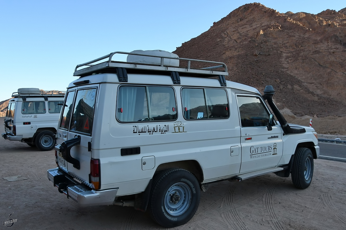 Zwei Toyota Land Cruiser Mitte Dezember 2018 auf der Sinai-Halbinsel.